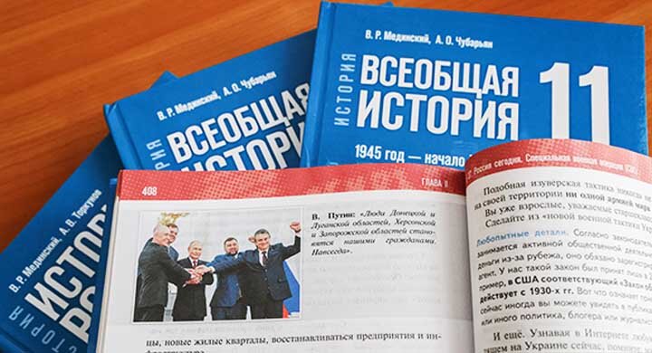 На этой неделе были представлены новые учебники по всеобщей истории и истории России для 10-х и 11-х классов. Работа велась под руководством помощника президента, председателя Российского военно-исторического общества Владимира Мединского, который сообщил, что в новых книгах полностью переписаны разделы о 1970-х, 1980-х, 1990-х и 2000-х годах. Появился раздел с 2014-го по сегодняшний день, включая спецоперацию (СВО) России на Украине.