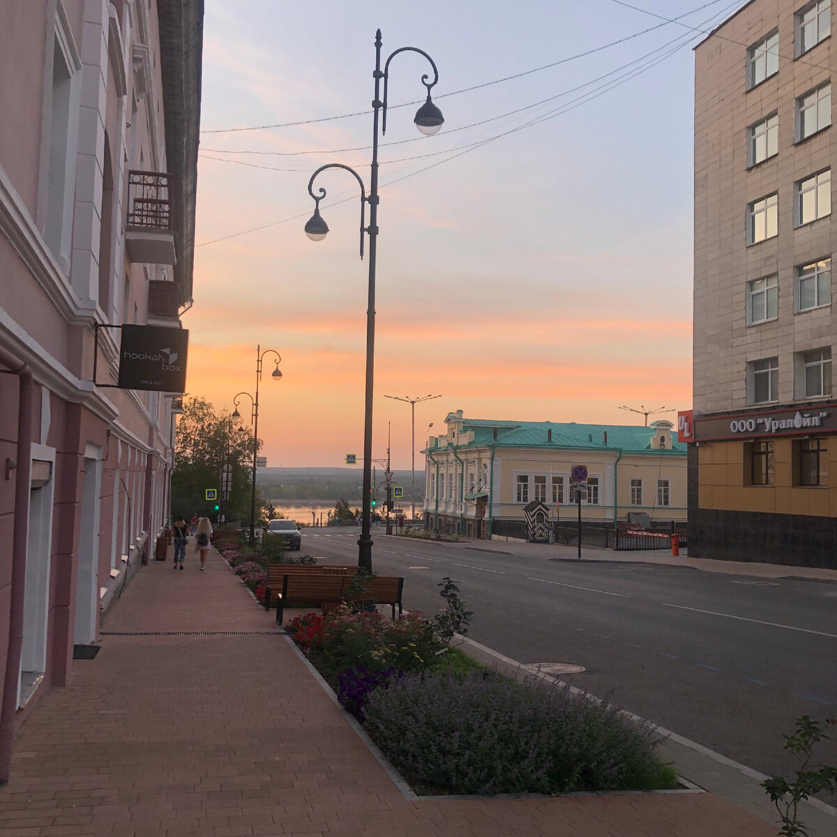 Улицу Сибирская недавно отреставрировали, теперь приятно здесь прогуляться по улице до сквера с видом на Каму. Теперь можно посидеть на скамейке с кружечкой капучино и красивым видом на реку! Прогуляться до ул. Монастырская и поймать удачный кадр с закатом.. В завершение прогулки вечерний променад можно закончить в театральном сквере у Оперного театра на лавочке и напечатать этот пост!