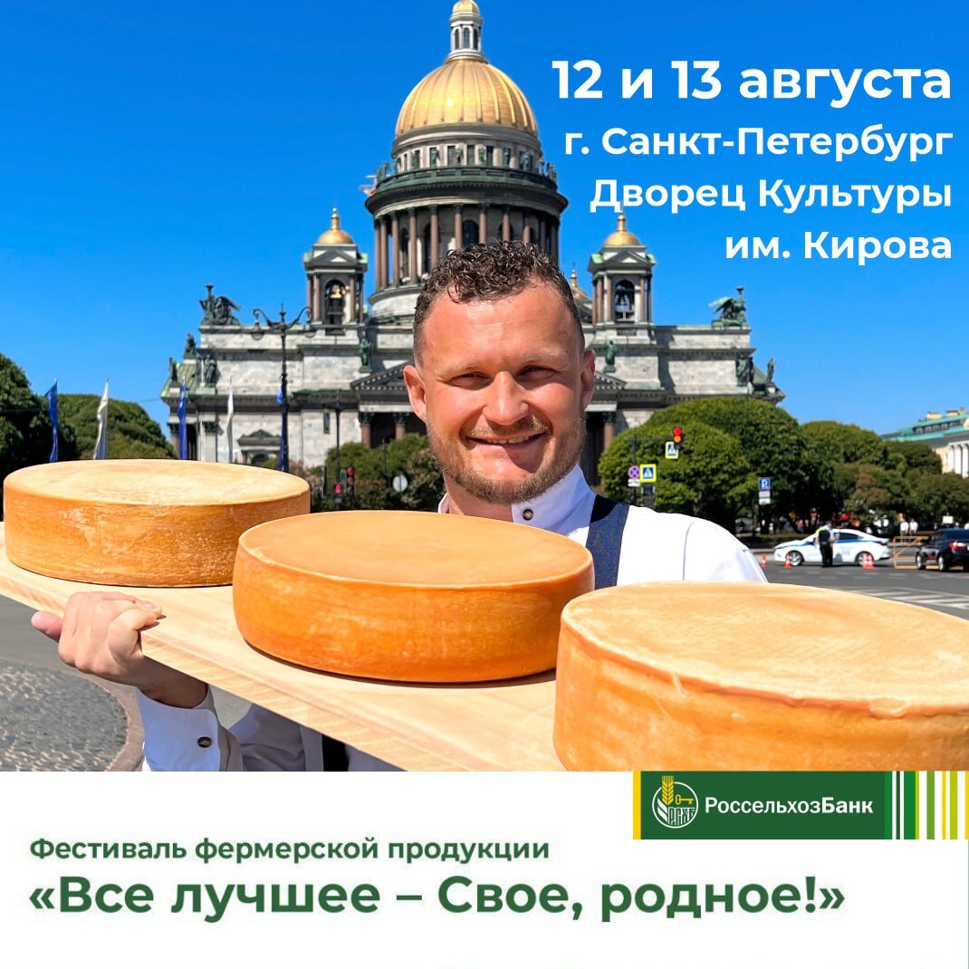 Друзья! В эти выходные с 12 августа по 13 августа мы будем со своими истринскими сырами в Санкт-Петербурге на фестивале фермерской продукции «Всё лучшее – Своё, родное!», который пройдет в Дворце Культуры им. Кирова. Мероприятие организовано Россельхозбанком. Обязательно приходите! И мы там будем не одни, кроме нас на фестиваль приедут десятки фермеров из разных регионов со своими вкусными сырами! Помимо вкусностей гостей ждет развлекательная программа: игровая лаундж-зона с настольными и командными играми, мастер-классы и лекции, конкурсы, дегустации. Так что можно не только закупиться нашим сыром, но и классно провести время. Вход свободный! С 12:00 до 22:00 А также заглядывайте в наши магазины в Питере – у нас уже 14 точек. Они находятся по адресам: 📍м. Беговая, Приморский проспект, д. 72 (ТРК "ПитерЛэнд"); 🕐 Ежедневно: 10:00-22:00 📍г. Колпино, ул. Веры Слуцкой, д. 46/2; 🕐 Ежедневно: 9:00-20:00 📍м. Купчино, Балканская площадь, д.5 лит. О (ТЦ Балканский, корпус 6); 🕐