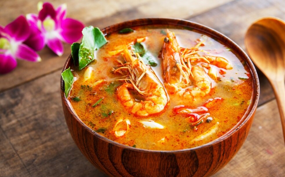Представьте: жаркий тропический день, шелест листьев пальм, шум прибоя и ароматное, пикантное блюдо, которое мгновенно окутывает своим волшебством. Это Том Ям Кунг, король тайских супов! Что такое Том Ям Кунг? Это традиционный тайский суп, в основе которого - креветки, пряные травы и особые ингредиенты, придающие ему уникальный, неповторимый вкус. Каждый его глоток – это многогранное сочетание кислого, острого, сладкого и соленого. Давайте же приготовим его! Ингредиенты: -Креветки — 300 г (очищенные, но с хвостиками) -Грибы шампиньоны — 200 г (можно использовать тайские грибы) -Лемонграсс (трава лемонника) — 2 стебля -Листья лайма каффир — 4-5 шт. -Корень галангала — 5 см (можно заменить свежим имбирем) -Чили перец — 2 шт. (по желанию) -Сок 2-х лаймов -Рыбный соус — 2 ст. л. -Сахар — 1 ч. л. -Вода или куринный бульон — 1 л -Паста "Том Ям" (если есть) — 1 ст. л. -Кокосовое молоко (необязательно) — 200 мл -Зелень кориандра — для подачи Приготовление: -В глубокой кастрюле вскипятить
