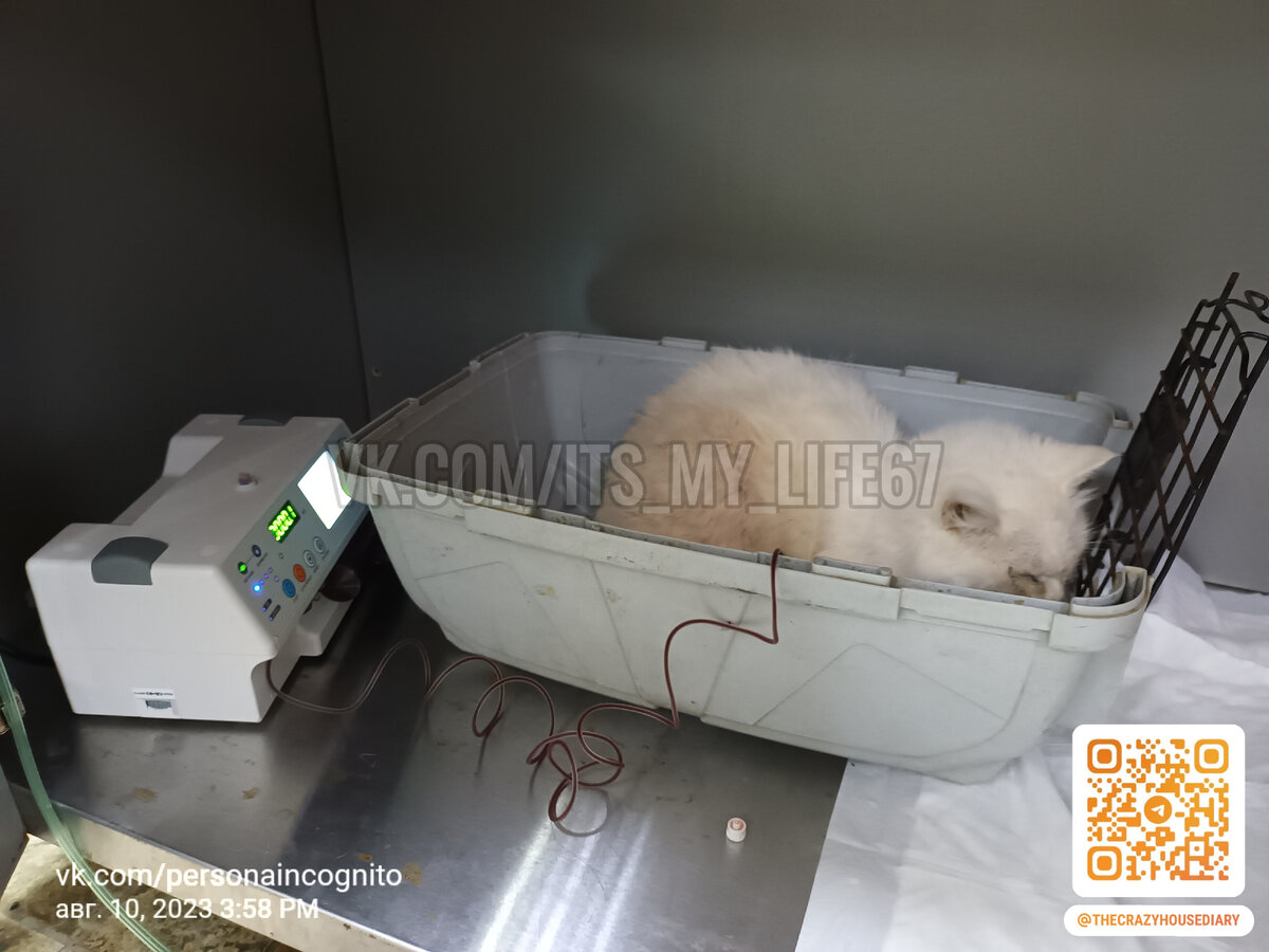 ㅤВьюга на переливании крови. ㅤДонор - Джокер, наш постоянный спасатель. ㅤСегодня днём Вьюга неожиданно отказалась от еды, стала вялой, слизистые бледные. В связи с этим была доставлена в клинику вместе с Джокером. ㅤТакже в уголке правого глаза, где переносица, у неё выросло какое-то новообразование, напоминающее пульку. Сегодня с этим разбираться не будем, но так как на шее у неё тоже что-то есть (капсула под кожей, её заметили ещё при подготовке к экстренной кастрации в тот день, когда Вьюга к нам попала), вероятно, грозит гистология... ㅤ🐈 Помочь подопечным можно по следующим реквизитам (Сбербанк): ㅤ💳 5469 5900 1115 2041, Яна Юрьевна Б..