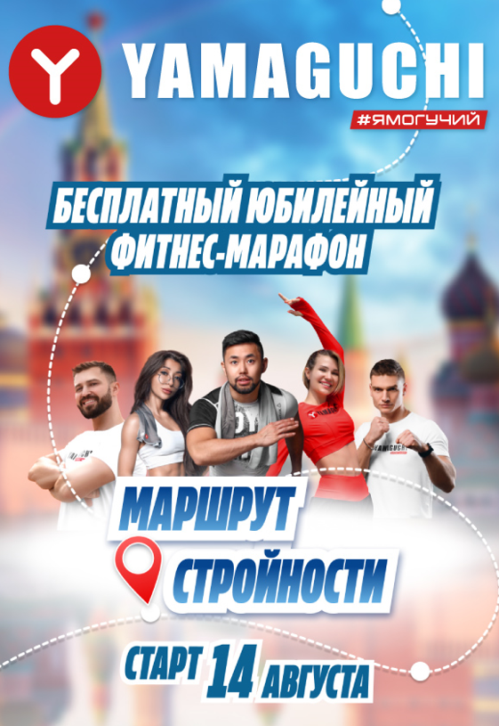Преодолей с нами препятствия комплексов и страхов, сожги лишние килограммы и построй фигуру-мечты! Бесплатный юбилейный фитнес-марафон «Маршрут Стройности» СТАРТУЕТ 14 АВГУСТА! Ощути дух соперничества и поборись за главный приз — велотренажёр Yamaguchi Fitness Bike. Отпразднуй с нами юбилейный марафон в солнечной столице! Открывай дорожную карту Yamaguchi и отправляйся в новое путешествие по маршруту к красивой фигуре и жизненному тонусу! ПРОГРАММА МАРАФОНА: ✅ 10 дней жиросжигающего пути