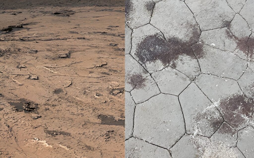 Глинистые минералы обычно образуются в воде, а сульфаты формируются по мере высыхания воды, отмечают ученые. В отличие от ранее найденных подобных пород ниже по склону горы новый минерал отличается шестигранным узором грязевых трещин.