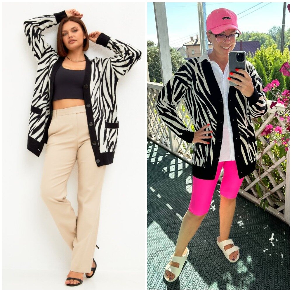 Здравствуйте, дорогие читатели! Меня зовут Ирина, я - стилист, и на этом канале показываю одежду и аксессуары с Wildberries такими, как они есть, то есть, из серии "ожидание/реальность". Мои параметры: рост 169 см, вес 62 кг, 95-75-100 ✅Основной канал: Стильно - не значит дорого! Ставьте лайк в поддержку канала, и давайте смотреть на мою сегодняшнюю покупку. Купили с Дашей себе один кардиган на двоих - уж очень нам понравился своей универсальностью. Анималистичный принт подойдет подо все! Кардиган удлиненный, очень теплый (в +30 мы просто сварились), качественно сшит. Размер у него единый: на мой 46 и Дашин 42-44 сел свободно, как и нужно было. В таком кардигане можно и в школу, и на работу, и просто на каждый день. Так как кардиган удлиненный, то с ним можно носить даже джинсы скинни и леггинсы. Отлично дополнит монохром и сделает образ более интересным! Если вам нужен артикул кардигана, ставьте + в комментарии, всем отвечу. Ставим вердикт кардигану: ДА или НЕТ?⬇️ Подписывайтесь✅на ка