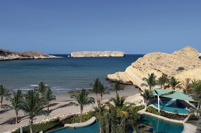 Прямой перелет из Москвы, великолепный сервис и космические виды — непонятно, почему Оман еще не стал главным туристическим направлением, но, кажется, это лишь вопрос времени. И официально открывшийся Jumeirah Muscat Bay процесс точно ускорит Первое, о чем думаешь, попадая в Маскат: здесь феноменально чисто и странным образом зелено — учитывая, что город построен практически в пустыне. Чистоту объяснить не удалось никак: машины, которые мыли бы улицы по привычной нам городской схеме, обнаружены не были. Видимо, здесь просто не сорят, а пыль не оседает на белые стены домов благодаря какой-то физической аномалии. А вот про зеленые оазисы оманцы говорить любят — это их гордость, которая появилась благодаря системе орошения и водоснабжения, разработанной с подачи предыдущего султана Кабуса. Воду используют морскую, очищенную, и для полива ее не экономят. Пятнадцать минут от аэропорта по идеально ровным дорогам — и ты на берегу моря, в Jumeirah Muscat Bay. Отелькамерный — 206 номеров,