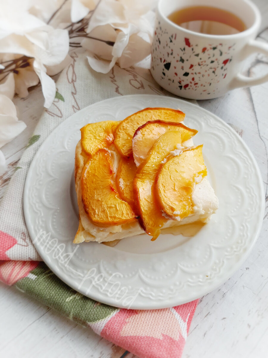 🔆КБЖУ на 100 г.: 134 ккал 10.6/5.2/11 Выход: 521 г. 🔆Ингредиенты: Крупа манная - 10 г. Молоко 2.5% - 160 г. Творог 5% - 180 г. Яйцо куриное - 2 шт. Персики - 150 г. (Вес без косточки). Подсластитель по вкусу, у меня 10 г. Prebiosweet. 🔆Приготовление: 1️⃣ 160 г. молока доводим до кипения. 2️⃣ 40 г. манной крупы заливаем горячим молоком, перемешиваем и оставляем минут на 10, за это время она хорошенько набухнет. 3️⃣ Два яйца делим на белки и желтки. Белки взбиваем с подсластителем до крепких пиков. 4️⃣ К манке добавляем 180 г. творога, два желтка и пробиваем погружныи блендером до однородной консистенции. 5️⃣ В несколько заходов добавляем белки, аккуратно перемешивая лопаткой. 6️⃣ Перекладываем смесь в форму для выпечки, у меня стеклянная, квадратная 16 см. 7️⃣ Персики нарезаем ломтиками и выкладываем сверху. 8️⃣ Убираем в духовку на 180° и 45-50 минут. Наш манник готов, приятного аппетита ❤