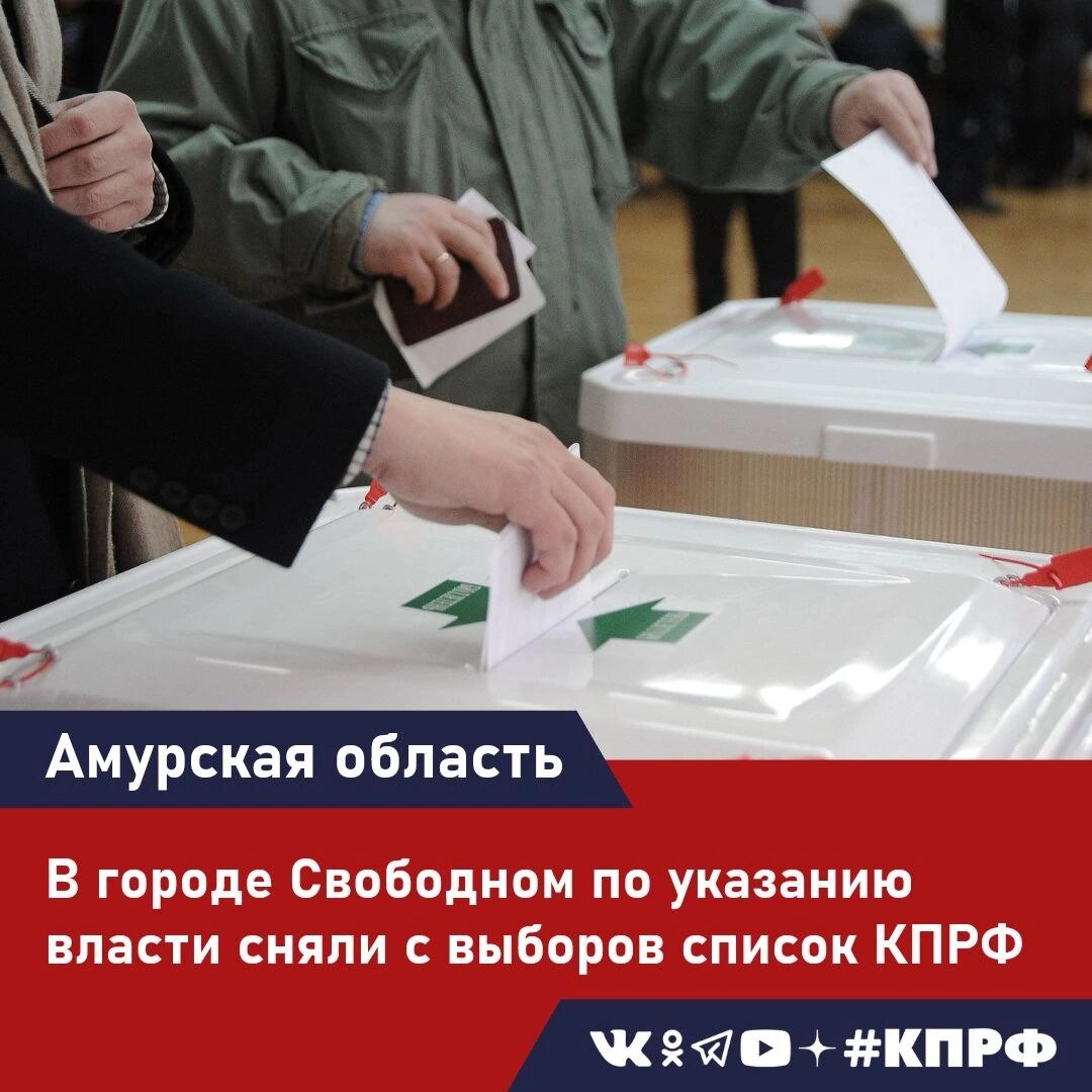 Список кандидатов в депутаты Свободненского городского Совета от КПРФ по единому избирательному округу в полном составе снят с выборов. Такое решение приняла судья Ольга Осокина по административному иску ЛДПР. В штабе КПРФ с решением суда категорически не согласны и считают его политически мотивированным. Коммунисты намерены добиваться восстановления своего списка в областном суде, а если потребуется, то и в Верховном.