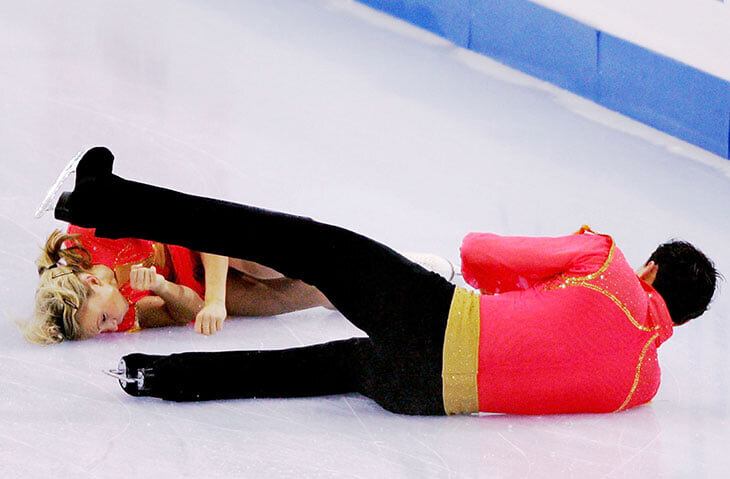 17-тысячная Mellon Arena в Питтсбурге замерла от ужаса, когда Максим Маринин, выполняя поддержку, уронил партнершу на лед с двух метров.