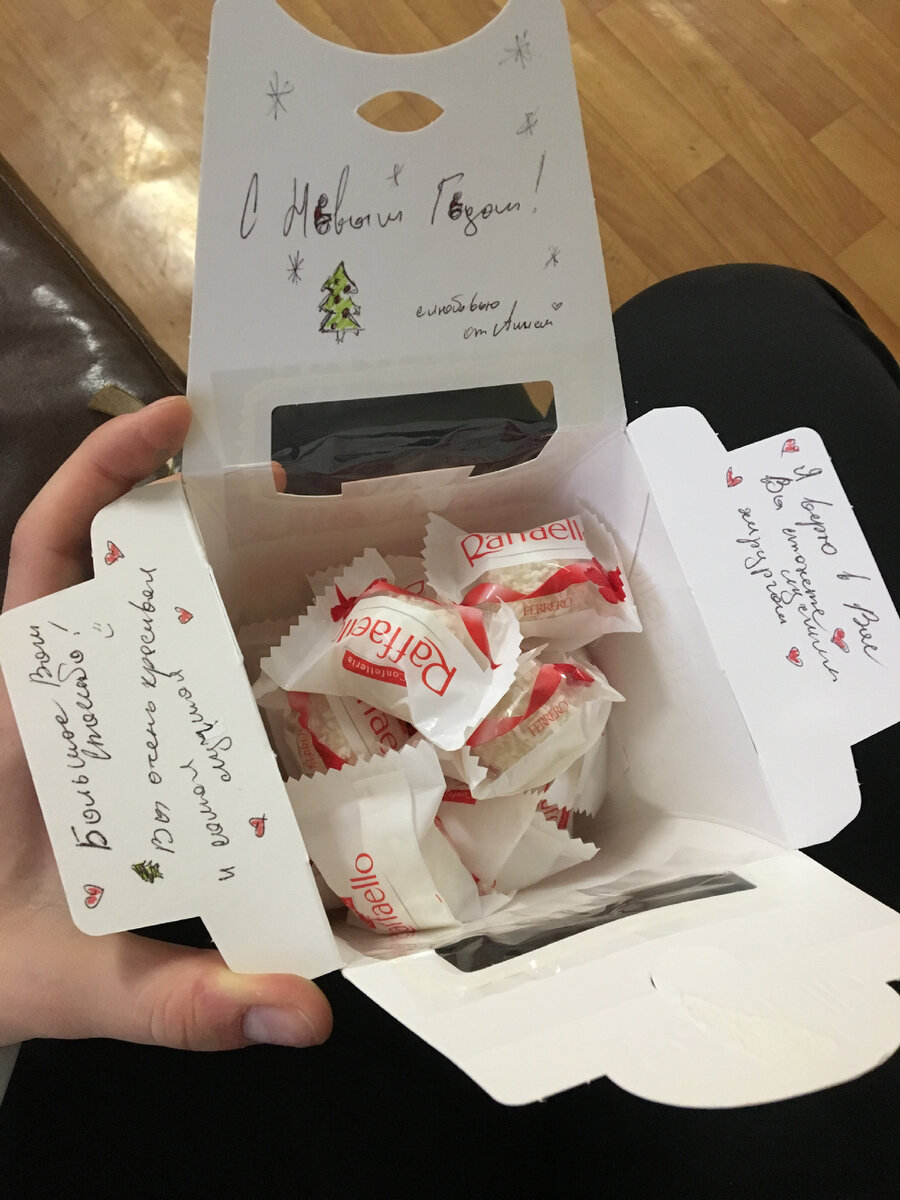 Если уж очень хочется подсластить жизнь врачу, то подарите не просто коробку конфет, а частичку вашей души с пожеланиями. Например, однажды я получила вот такие конфеты и даже сделала фотографию на память: