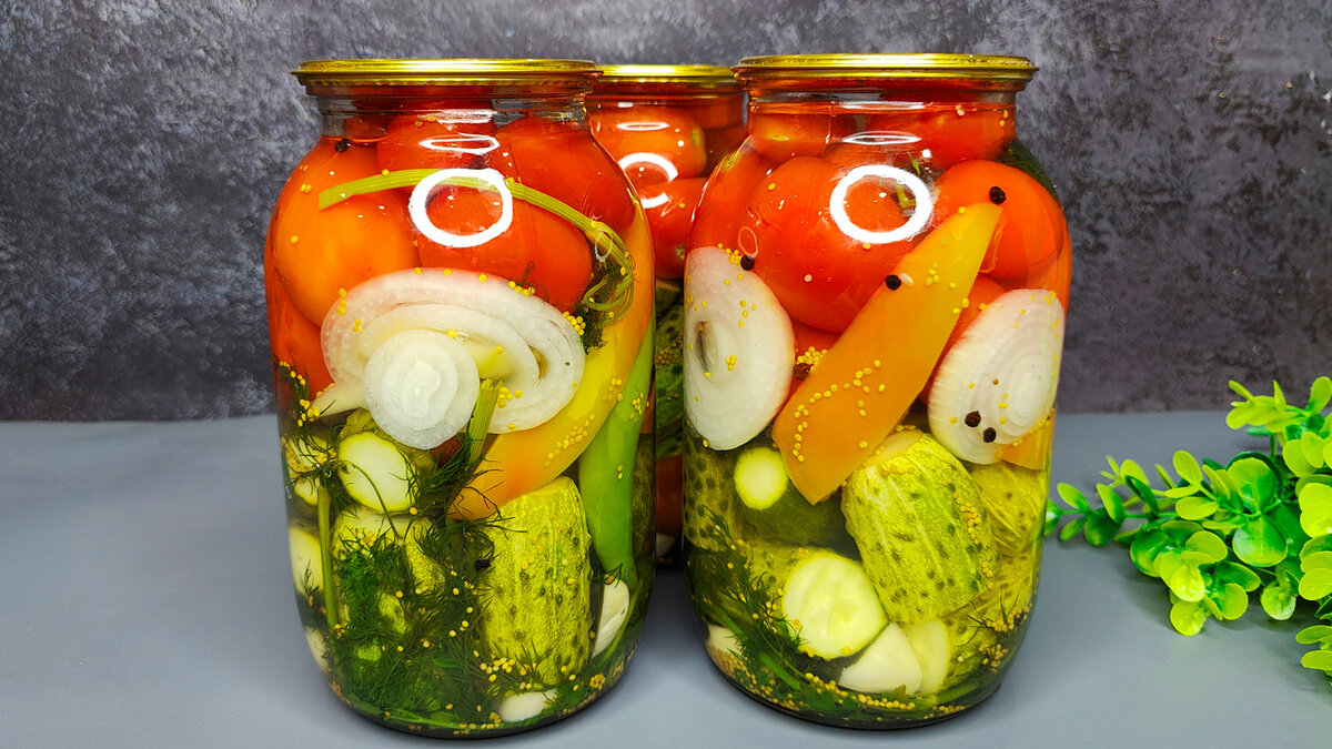 Приветствую вас на канале "Карамелька"! Лето пролетело незаметно, а сезон заготовок в самом разгаре. Большинство хозяек предпочитают делать консервацию самостоятельно, по своим проверенным рецептам которыми пользуются из года в год. Вот и я решила поделиться просто потрясающим рецептом которым пользуюсь уже много лет, от таких заготовок семья и гости всегда в восторге. Огурчики и помидорчики получаются просто фантастическими, и рассол выпивается тоже всегда. 📌Для приготовления нам понадобятся следующие продукты: Рецепт рассчитан на 1.5 литровую банку. Способ приготовления: ✅Все овощи предварительно хорошенько промываем под проточной водой и замачиваем на 1-2 часа. ✅Для этого рецепта я использую помидоры сорт "сливка". Каждый помидор возле хвостика прокалываем зубочисткой, чтобы в ходе консервации помидор не лопнул. ✅На дно заранее простерилизованных банок укладываем несколько веточек петрушки и укропа, чеснок нарезаем пластинками и также добавляем в банку. ✅Подготовленные огурцы дост