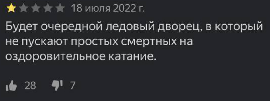 Наиболее меня поразила фальшивая радость в Сети по поводу открытия нового Центра фигурного катания Тутберидзе. И – фальшивое же равнодушие, а то и негодование, по поводу еще более грандиозного ледового Центра Академии Плющенко. Чем провинились пред публикою Рудковские и чем так осчастливила народ Тутберидзе – разбираем сейчас. Во-первых, восторги о Тутберидзе разделяют не все люди, а только почитатели Катка. Вот комментарии из Сети по поводу строительства Центра Тутберидзе на юге Москвы: Ну и так далее, подобных возмущений, а не восхищений, тьма тьмущая. А вот из комментариев на мою заметку о новом Дворце Рудковских: Наташа Германова 8 дней "Строят катки", а кто им строит? На бюджетные деньги построили спортивный комплекс в Тропарёво -Никулино,а гонору-то,мама не горюй. Татьяна 9 дней Идёт как танк к своей мечте. Ну и подобное, всё одинаково. То есть Рудковские якобы строят исключительно на деньги налогоплательщиков для своей личной выгоды, а Тутберидзе – только на свои деньги для сча