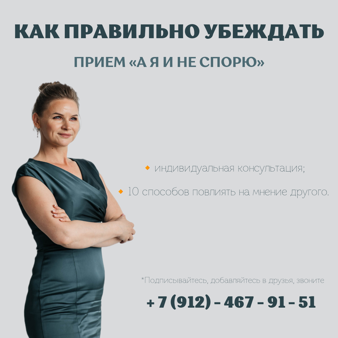 🤔Убеждая человека, очень важно оттолкнуться от его прежних убеждений. А как это сделать, я Вам сейчас покажу. 😏Вот, смотрите, как интересно, я вам показала этот прием уже ранее, в других постах. Мы не оспариваем, и я не говорю нет. 📌Пример: Риэлтор с покупателем, который приобретает квартиру для коммерческих целей (сдача в аренду): ❌«Не надо, это нехорошие инвестиции она вам не принесет всех доходов» - правильный риэлтор этого не говорит. Надо оттолкнуться, от мнения человека, например, покупатель говорит: «Вы знаете я несколько раз бывал в этом районе и знаю, что там хорошо сдаются квартиры и я понимаю, что нужно покупать именно там, это хорошая инвестиция». Все, риэлтор его услышал и понял из чего у покупателя сложилась такая картина мира. ✅И риэлтор говорит: «Прекрасно, действительно, очень востребованный район, где много торговых центров и т. д. Скажите пожалуйста, а есть ли у вас аналитика? В какие конкретно месяцы и какие именно апартаменты там сдаются? Какие конкретн