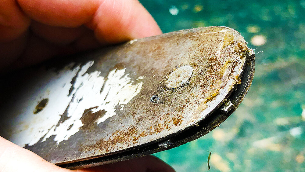 Привет! Сегодня покажу первые кадры моего первочеловек проекта с нуля на новом гриндере. Увидел тут как то в сети как ребята делали нож из шины цепной пилы, поэтому решил повторить. Метал там интересный, достаточно тонкий и упругий очень! Итак вот из чего делал! Старая шина от цепной пилы. Уже заклинило звезду и в целом сами шина была неоднократно перегрета из-за чего не изрядно повело.