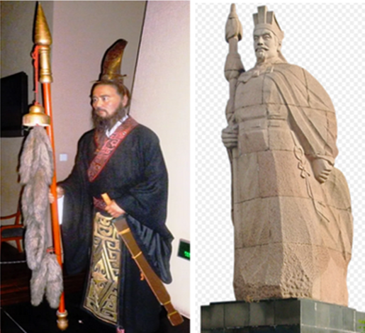 Восковая статуя Чжан Цяня в одном из музеев Китая (годы жизни Чжан Цяня 200-114 до нашей эры). Памятник Чжан Цяню в городе Сиан китайской провинции Шэньси.