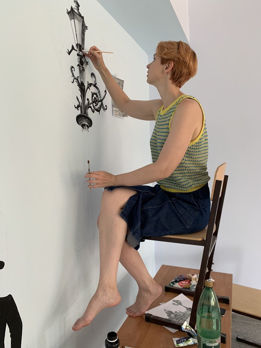 Во всех школах сейчас горячая пора: пока ребятня догуливает каникулы, взрослые приводят в порядок кабинеты и коридоры, готовясь к новому учебному году. В Работкинской средней школе не стали ограничиваться косметическим ремонтом. Здесь на стене в кабинете русского языка и литературы появился петербургский пейзаж: Исаакиевский собор, памятник Николаю I, мужской силуэт в цилиндре и с тростью, в котором без труда можно узнать Александра Сергеевича Пушкина. Над созданием картины на стене в течение 35 часов (пять дней по семь часов) трудилась художник-живописец, преподаватель Учебного центра «Интеллект» Ульяна Бойчук. «С идеей такого рисунка ко мне обратились активные родители учеников пятого класса Работкинской средней школы. Это очень сплоченные и неравнодушные родители, которые хотят сделать для детей в стенах школы что-то особенное. Было очень интересно работать с таким заказом и приятно создавать то, что останется в школе не на один год», – рассказала Ульяна. «Наши дети перешли в пятый