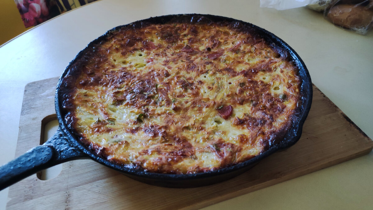 Сегодня впервые делала запеканку из кабачка по принципу смешала всё, что было в холодильнике. Получилось вкусно, делюсь с вами. Понадобится: Кабачок очищаем от кожуры и семян, натираем на крупной тёрке, туда же натираем сыр, мелко нарезаем сосиски и зелень, добавляем яйца, муку. Всё перемешиваем и отправляем в духовку до румяной корочки. Готово.