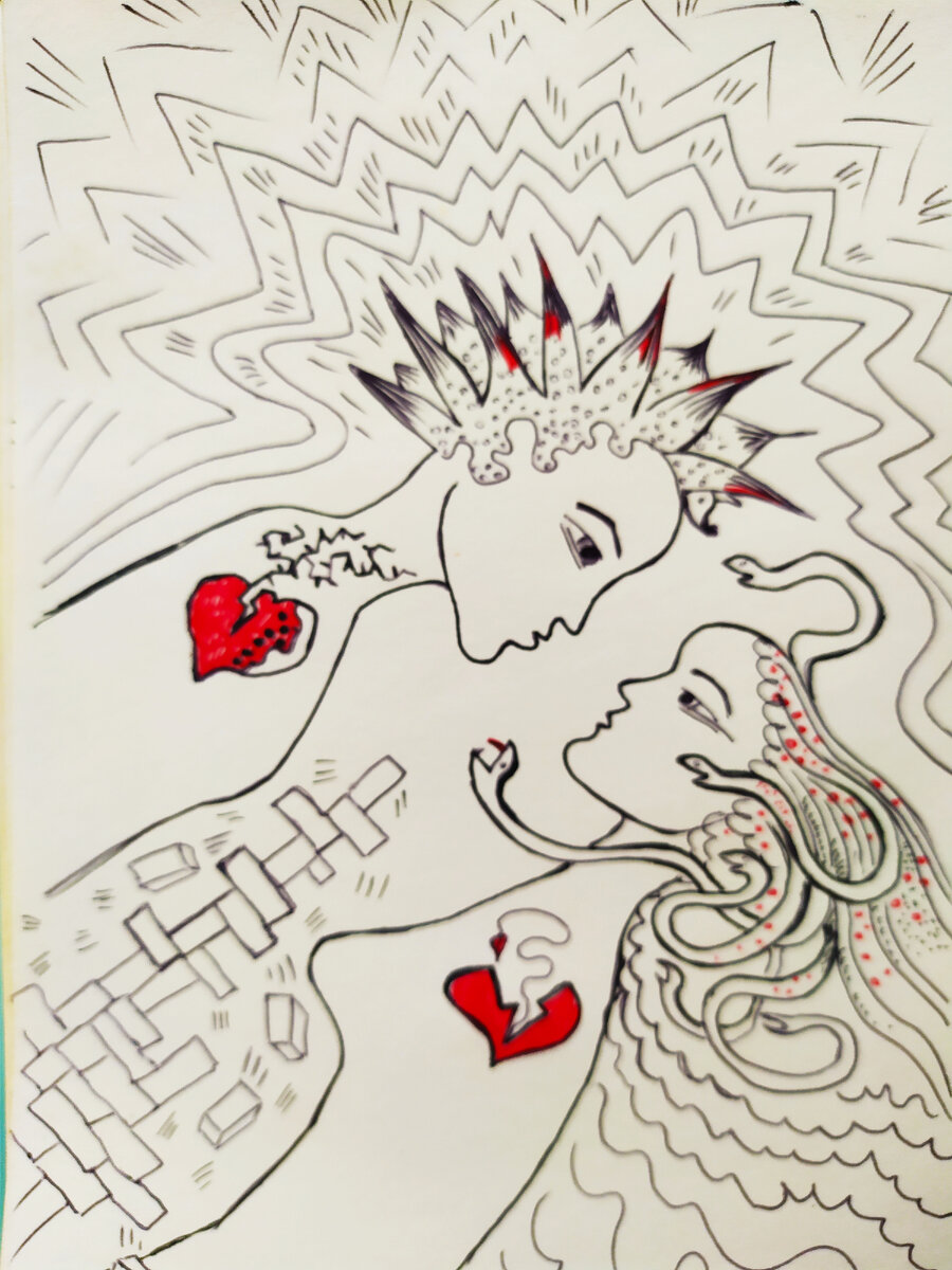 Есть у меня такая графическая серия про мужчину и женщину. И вот периодически меня тянет её продолжать. Хотя внешних жизненных ситуаций и предпосылок к тому, чтобы нарисовать именно этот сюжет у меня - нет. Но, видимо, художник носит внутри себя, что то, что со временем хочет материализоваться на бумаге, и проявиться подсказкой, в виде некоего образа, несущего много смыслов. Хотя это касается любого человека вообще. Если отбросить предрассудок о умениях и навыках, то любой человек может показать и себе и миру, что он хранит внутри себя. Ведь кому то это важно именно увидеть, а не просто знать. Иллюстраторы для этого и нужны, чтобы показывать картинки, которые формируются внутри на основе текста или знаний. Но каждый иллюстратор пропускает прочитанный текст через себя и на основе своих представлений рисует картинку. И дальше, читатель формирует своё восприятие книги по этим , нарисованным кем то картинкам. Картинки могут нравиться, а могут вызывать чувство отторжения. Если по
