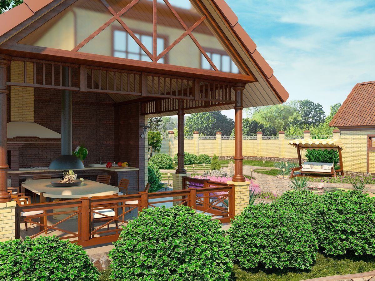 Кроме того, такой вариант также упрощает и удешевляет стоимость подключения электричества, водопровода, газа от дома до летней кухни.