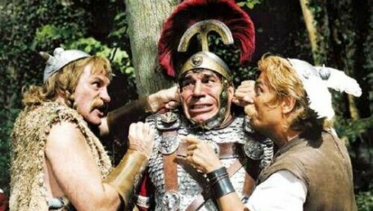 Астерикс и Обеликс против Цезаря / Asterix et Obelix contre Cesar. Франция-Италия-Германия, 1998. Режиссер Клод Зиди. Сценаристы: Жерар Лозье, Клод Зиди (по мотивам комиксов Рене Госинни и Альбера Удерзо о галлах Астериксе и Обеликсе). Актеры: Жерар Депардье, Кристиан Клавье, Роберто Бениньи, Мишель Галабрю, Клод Пьеплю, Даниель Прево, Пьер Палмаде, Летиция Каста, Ариэль Домбаль, Марианне Зегебрехт, Готтфрид Йон, Жан-Пьер Кастальди и др. Кинопрокат во Франции – со 2 февраля 1999: 8,9 млн. зрителей. Кинопрокат в России – с 19 октября 2000. К 1998 году репутация Клода Зиди как супер-успешного коммерческого режиссера изрядно пошатнулась. Ни одному из его фильмов с 1993 по 1997 год («Низкий профиль», «Арлетт») не удалось преодолеть в кинопрокате планку в один миллион зрителей. Казалось бы, кассовые триумфы Клода Зиди остались далеко позади. Но… никогда не говори никогда. Фантастическая комедия «Астерикс и Обеликc против Цезаря» стала не только триумфатором французского кинопроката 1999 год