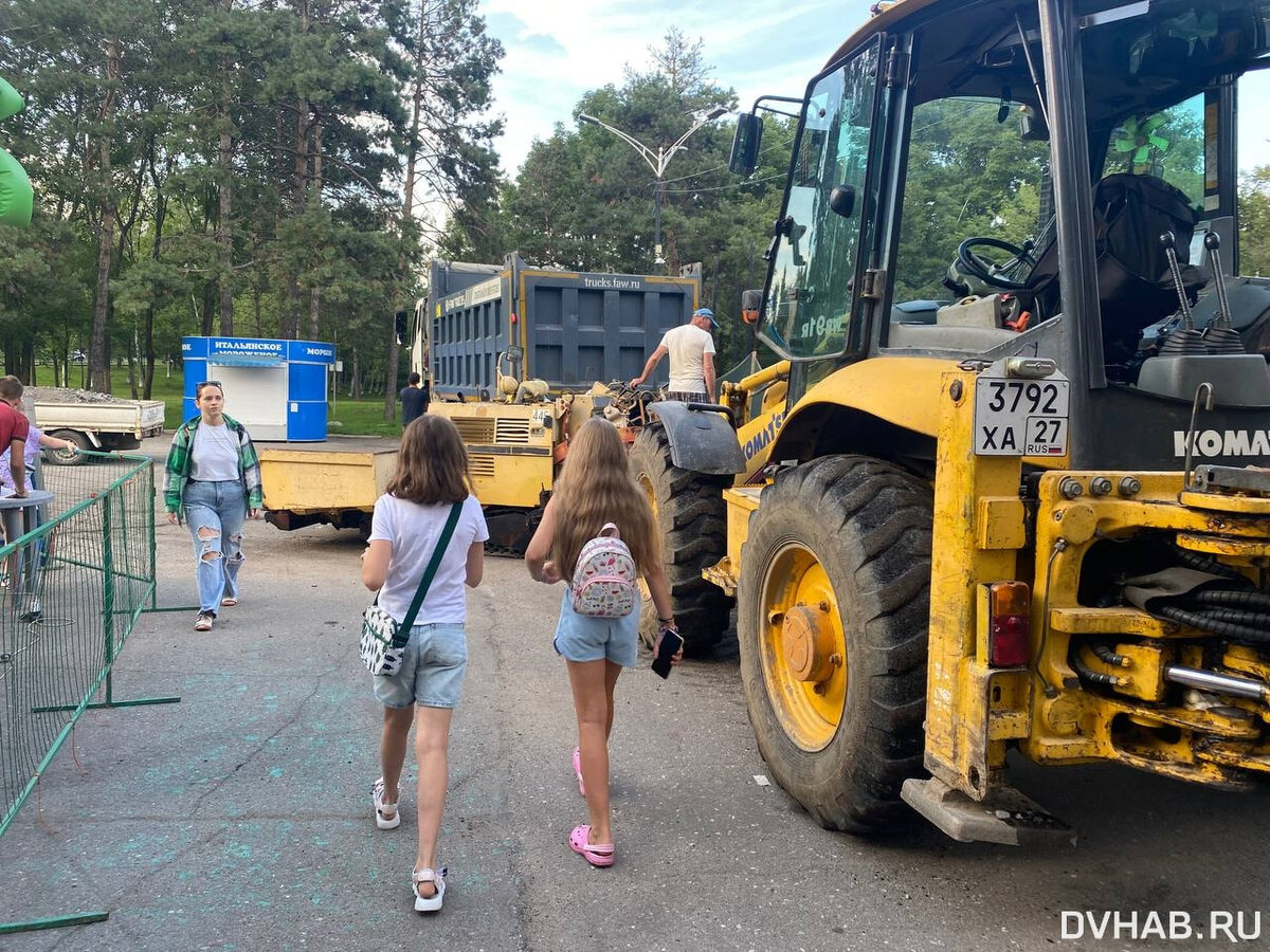 - Работы велись на огороженной территории, но при этом вся техника стояла посреди бульвара, где люди ходят, и даже сигнальную ленту никто не натянул. А там же детская площадка, батут рядом, ребятня туда-сюда носится. В результате, как говорится, смешались кони и люди. Ни о безопасности, ни о комфорте прохожих никто не подумал, - рассказала Евгения, хабаровчанка.