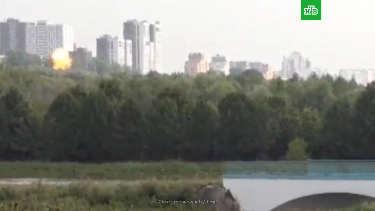 Момент падения беспилотника в Москве попал на видео [ Смотреть видео на сайте НТВ ] Камера засняла момент уничтожения беспилотника в районе Карамышевской набережной в Москве. На кадрах видна яркая вспышка над лесом. Пламя поднимается на несколько метров, затем рассеивается, и вверх поднимается облако дыма. Ранее сегодня очевидцы сообщили о взрыве в районе Карамышевского гидроузла в Москве. Мэр Сергей Собянин сообщил, что над Москвой сработала система ПВО. Был сбит беспилотник, в результате ЧП никто не пострадал. В Минобороны России назвали прилет БПЛА «попыткой киевского режима осуществить террористическую атаку». Беспилотник подавили средствами радиоэлектронной борьбы, он упал в лесном массиве на западе столицы. [ Смотреть видео на сайте НТВ ]