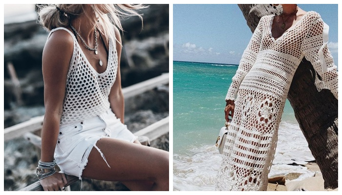 Сетка – один из трендов нынешней моды. Поначалу сетка ассоциировалась только с пляжными нарядами, но теперь она нашла свое применение в повседневной и вечерней моде. Пляжное платье из сетки – отличный выбор для создания модного и соблазнительного образа на отдыхе. Наряд прекрасно сочетается с купальником, подчеркивает женственность и сексуальность его обладательницы. Благодаря легкости и прозрачности материала, белая платье-сетка создает эффект легкости и воздушности. Такой наряд идеально подходит для жарких летних дней. Оригинальный вечерний образ создаст платье из более плотной сетки с оригинальной отделкой. Наряд позволяет создать утонченный и изысканный стиль, подчеркнуть вашу индивидуальность и характер. Платье из крупной сетки можно носить со слитным купальником. Оригинальный пояс сделает акцент на талии и подчеркнёт красивую фигуру. Наряд из яркой сетки можно надеть на тонкое платье телесного цвета. Композиция смотрится очень эффектно и привлекает внимание окружающих. Платье с о