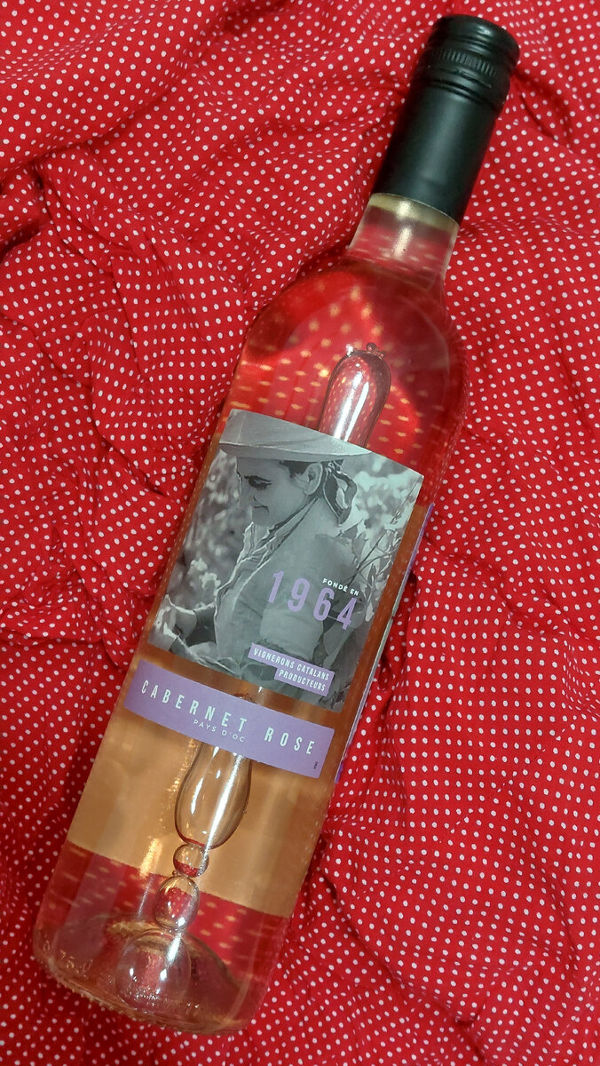 Друзья, купил попробовать интересное сухое французское розе. Делают его в регионе Лангедок-Русильон. Пробуем 1964 Cabernet rose paye d'oc. Бутылка Бутылка прозрачная, формы бордо. Цвет вина виден сквозь стекло отчего бутылка выглядит стильно и выгодно выделяется на полке в совокупности с необычной этикеткой. На ней фото пожилого мужчина на винограднике, а также дата основания хозяйства. Выглядит очень атмосферно и исторично. Цвета, серый и фиолетовый, подобраны хорошо. Смотришь как на исторический коллаж про виноградарей, которые сделали их внуки. Мило. Родная контрэтикетка полностью на месте и читается. На ней история, из которой узнаем, что кооператив Венерон Каталан, основанный в 1964, до сих пор вдохновляется старыми виноделами и сохраняет их вдохновение в аромате своих вин. Если переводить в целом, то идея такая. Вино полностью моносортовое, из каберне савиньон, сухое, igp. Последнее значит, что где виноград вырос, в этом регионе из него и сделали вино. Это определенная гарантия