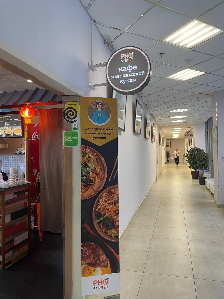 Примерно год назад в БЦ Новоспасский открылся PhoBo. Заведение за это время впечатлило качеством еды, поэтому решил отправиться на поиски вьетнамской еды поблизости. Нашел в соседнем БЦ Полларс заведение Pho Street (на входе у охраны необходимо попросить пропустить внутрь). Сет №2: Фо Бо 600мл + Бань Бао + компот 100мл (439р). Фо Бо (суп слева) был просто ужасен от переизбытка лука и кинзы, слабого бульона, кусков застарелой говядины, которые еле жевались. Бань Бао выдали с «дырочкой в правом боку», как пелось в старой песне. Булочка была скользкой, ее очень плохо разогрели. Скорее всего, в микроволновке, а не на пару. Компот на 2 глотка, даже не знаю зачем он тут. Больше всего меня впечатлил кокон от личинки таракана (лежал на подносе, внизу на фото). Немы с курицей (229р). Недожаренные холодные немы в огромном количестве масла. По итогу: поход в заведение был неудачен, никогда туда больше не пойду и вам не советую. К тому же, вытяжка внутри вообще не справляется.