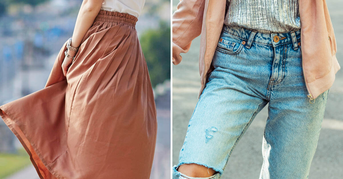 - © DepositphotosЕсли ты собираешься надевать платье или юбку ниже колена, нижнее бельё можно не использовать вовсе. Правда, только в том случае, если тебе будет без него комфортно. А вот если ты хочешь надеть джинсы в жару, специалисты рекомендуют менять трусы дважды в день. Всё потому что в облегающих джинсах или штанах ты будешь потеть больше. Следовательно, и нижнее бельё будет пропитываться влагой. А это не самая благоприятная среда для деликатных зон твоего тела. Как тебе такое?