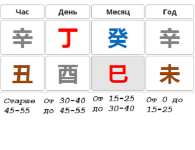 Похожим образом подходим и к столпу молодости – месяцу. Если у человека активная жизнь, куча планов и он их реализовывает, то не надо его сразу после 30 лет в пожилые записывать. Надо подвинуть границы времени по столпам и свериться с другими жизненными событиями.