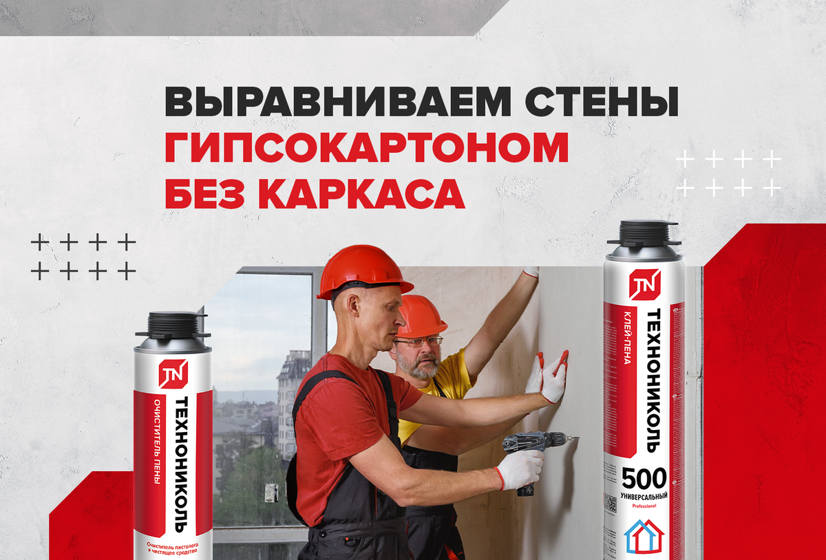 В ситуациях, когда кривизна стены невелика, можно обойтись без возведения каркаса для выравнивания. ГКЛ в этом случае крепится непосредственно на стену клеящей смесью. Ниже мы подготовили для вас пошаговую инструкцию, читайте и запоминайте. Преимущества бескаркасного метода выравнивания Надо помнить, что несмотря на все эти преимущества, бескаркасный метод можно применять не всегда. Выравнивание стен гипсокартоном без профиля проводится при отсутствии на их поверхности значительных перепадов (кривизны) по высоте и отклонений по вертикали. Инструкция 1. Прежде всего необходимо подготовить основание, очистив его от старых слоёв и загрязнений. 2. Перед приклеиванием листовых материалов к основанию проверьте ровность поверхности при помощи правила. 3. По углам стены вкрутите саморезы и натяните шнур по периметру с учётом максимальной неровности. 4. Нанесите разметку для вкручивания саморезов по всей ширине стены, учитывая размеры листовых материалов. Отступ от края листа рекомендуется сдел