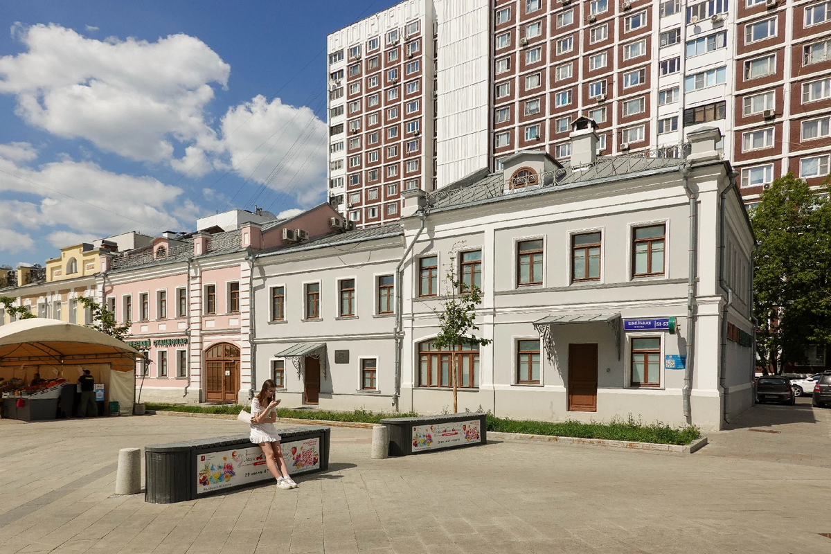 Я родился и всю жизнь прожил в столице, но даже и не знал про этот жуткий уголок. И ведь почти самый центр! Дорогая земля, а такой беспредел. Всего в нескольких минутах ходьбы - помпезная Школьная улица, одна из самых популярных пешеходных зон столицы. Да что там Школьная! Буквально рядом с этой помойкой благоустроенный участок улицы Прямикова. Выглядит как будто с иголочки. Слева бывшее здание первой в России фармацевтической фабрики купца первой гильдии Р.Р. Кёллера. Но если развернуться на 180 градусов и взглянуть на улицу Прямикова в сторону путей Горьковского направления Московской железной дороги... Еще в 1979 году здесь стояли вполне приличные дореволюционные двухэтажные особнячки. Два жилых дома в стиле классицизма, построенные в 1820-х годах. Внешне кажется, что их три, но на самом деле ближайшие к нам два корпуса это одно и то же здание, состоящее как бы из двух блоков. Еще один архивный снимок, относящийся примерно к тому же самому времени. И вот до чего все дошло. Южный фли