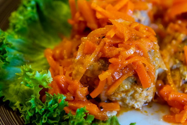 Если вы нечасто едите рыбу, но знаете, что она полезна и необходима в рационе, этот простой рецепт как раз для вас. Такую рыбку во времена СССР готовили во многих столовых, как правило, она была в меню в четверг – официальный «рыбный день» в советском общепите. Для рецепта можно взять минтай или хек, как в нашем случае. Эти сорта рыбы недорогие и обычно всегда есть в магазине. Отличаются тем, что в них практически нет костей, а мясо достаточно нежирное. Ингредиенты: Рецепт приготовления: Берем рыбу и, не торопясь, на нижней полке холодильника, ее размораживаем. Обрезаем плавники. Затем разрезаем поперек на кусочки толщиной сантиметра по четыре. Промываем, убираем остатки внутренностей и черную пленку, если они есть. Морковку режем тоненькой соломкой или натираем на терке. Лук — тонкими полукольцами. Ставим на огонь кастрюльку или глубокую сковороду, наливаем растительное масло и как прогреется – высыпаем лук с морковкой. Нам не надо, чтобы они зажарились, поэтому придётся п