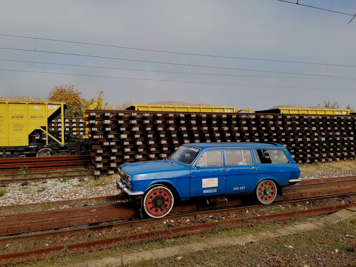Автомобиль ГАЗ-24-02 на рельсовом ходу в Сербии, станция Нови Сад.