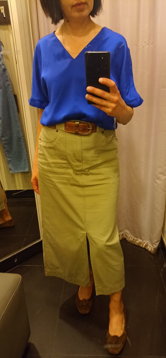 Рубрика: для себя. Два комплекта с новыми находками из секонд-хенда. Синий электрик, оливковый шёлк.