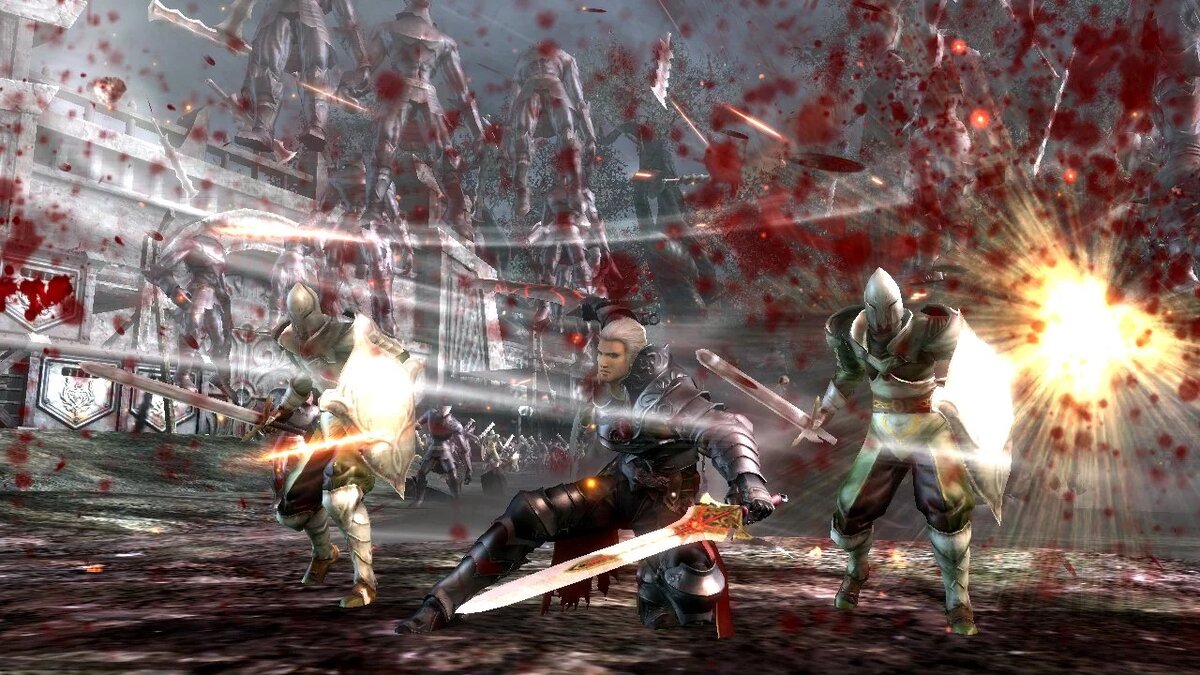 Всем привет! По свежим воспоминаниям о недавно пройденной N3: ninety-nine nights, я приступил ко второй части! И сразу увидел разительно изменившуюся стилистику. Вместо яркого солнышка и заливных лугов фэнтезийной сказки нас встречает мрачнейший (на первом уровне почти чёрнобелый) кровавый, но тоже фэнтези-мир, находящийся с самого начала игры, уже на краю гибели. Очень возросла динамика игрового процесса, да и скриптовые сценки стали получше. Перемещение (ну наконец-то) стало значительно быстрее, анимация лучше, а игра более жестокой! Расчленёнка и брызги крови, которая была и в первой части, здесь более проявлена. Так же, как и кнопка специального действия для каждого игрового персонажа, здесь ощущается более явственно. К примеру, первый же герой может насадить двух «адских» супостатов на одноручный клинок, держа его на весу и продолжая в это время вершить кровавую баню. Герои прорисованы более тщательно, хватает мелких деталей. Картинка стала насыщена разнообразными спецэффектами, п