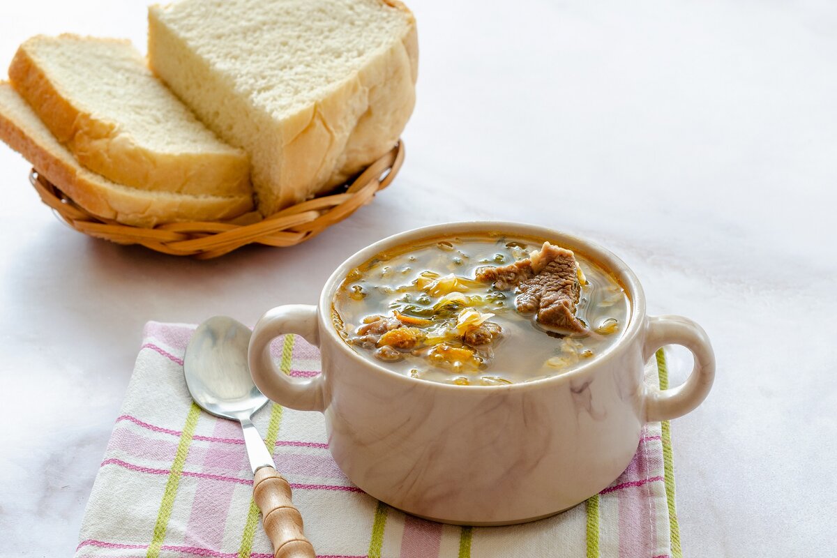 Щи - достойный конкурент борщу. Да, они не являются обладателями такого насыщенного цвета, зато вкуса и аромата у них не отнять. Начинают приготовление щей, как и любого другого супа с варки бульона. Удачнее всего щи получаются на говяжьем бульоне. Мясо для бульона выбирают с косточкой, а вот жир и пленки следует убрать. Мясо заливают холодной водой, доводят до кипения и снимают пенку. В кипящий бульон кладут целую луковицу, лавровый лист и перец горошком. Варят говяжий бульон 2 часа. Пока бульон варится, можно заняться подготовкой овощей. Тут все традиционно. Лук и морковь мелко шинкуют или трут на терке, обжаривают на растительном масле до золотистого цвета. Картофель очищают от кожуры и нарезают кубиками, а капусту тонко шинкуют. Когда бульон сварится, мясо и пряности вынимают. В бульон кладут картофель и пассерованные овощи. Остывшее мясо разбирают на волокна (мелко режут) и возвращают в бульон. Спустя 10 минут после картофеля в бульон отправляют капусту и продолжают варить под зак
