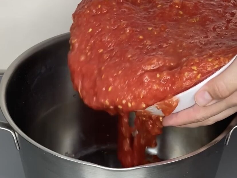 Не путайте пожалуйста этот рецепт с аджикой, у них абсолютно разная технология приготовления. Для приготовления соуса я в основном использую деформированные помидоры, с какими-либо повреждениям, которые не жалко. Мою, обрезаю. Общий объем уже очищенных помидоров должен составлять не менее 3 кг. Но по собственному опыту советую заготавливать побольше. Пропускаем помидоры через мясорубку. Для данного рецепта нужен красный болгарский перец. Общий объем очищенных от семян перцев должен составлять 1 кг. Пропускаем через мясорубку. И пока мясорубка в работе, сразу же в отдельную тару пропускаю чеснок. В кастрюле, подходящей по объему соединяем помидоры с перцем. Вливаем растительное масло без запаха, всыпаем соль, сахар, черный молотый перец, красный (острый) молотый перец Листайте галерею с фотографиями Ставим на огонь и помешивая доводим до кипения, затем уменьшаем огонь и провариваем ещё 30 минут. Теперь добавляем чеснок и уксус 70% 1 чл. Варим ещё 2 минуты. Подготов