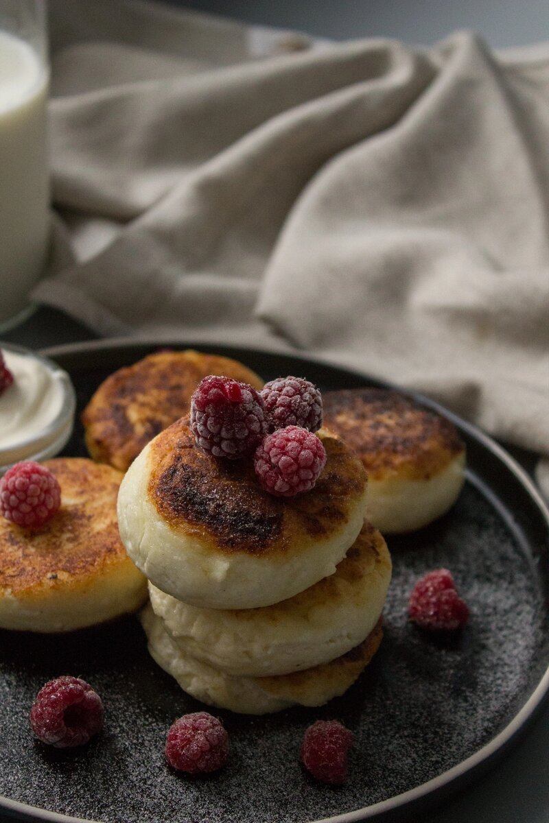 И так как обычно начну немного с истории происхождения. Ибо еще на Руси наши предки заметили, что если подогреть скиснувшее сырое необработанное молоко на печи, то получится «сыр» (от слова «сырой»). Однако в таком виде получившийся продукт принимать в пищу опасались, потому придумывались различные способы пристроя, одним из которых и стали сырники. Таким образом, все творожные изделия еще с давних времен назывались сырными, даже творог. Отсюда и название блюда – сырники Нам понадобится для приготовления: 1200г творога 2шт яйца Соль Сахар 6ст.л Муки Творог выкладываем в миску, добавляем яйца, сахар по вкусу, соль щепотку. Вымешиваем до однородности. Муки добавляю чтобы минимально липло к рукам. Формируем шарики и слегка их придавливаем. Можно жарить на сковороде или запечь в духовке .