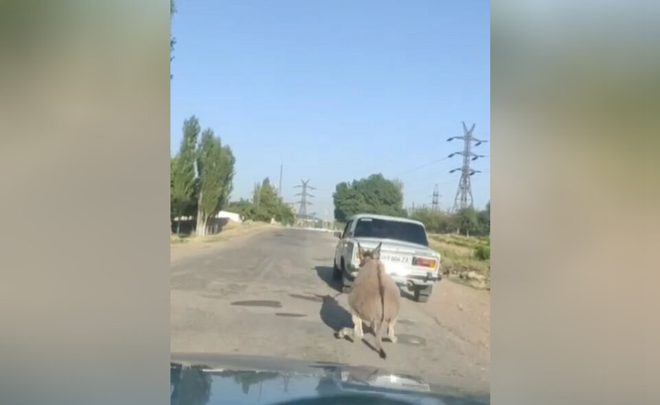 Живодер, который привязал осла к автомобилю, и катался так с ним, получил штраф всего в 330 тысяч сумов. Видео