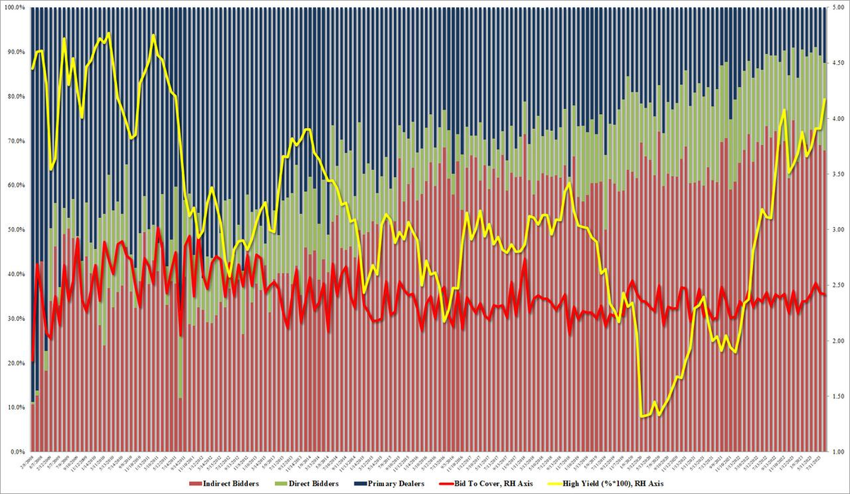 Неоднократно поясняли, что наиболее важные текущие события происходят не на передовой на украинском полигоне Долгой Войны, а на долговом рынке глобальной финсистемы. Собственно, там и решается, сколько еще месяцев (недель?) способен функционировать запад без выхода в чрезвычайную аварийную перезагрузку, что определяет, в том числе, его способность поддерживать антинародный марионеточный киевский режим, так как сложно будет поддерживать все более алчных марионеток на фоне бунтов голодных безработных в собственных странах. Из свежего. Согласно опубликованным ночью результатов последнего аукциона по продаже ГКО США (30-летних): - годовые процентные ставки поднялись с 3.91% месяц назад до 4.189% (high yield); - это рекорд за 12 лет, с июля 2011 (притом, что госдолг вырос за период в разы); Передаем привет ипотечникам и всем прочим долговым пирамидам, ибо ставки для них определяются ставками по ГКО США + премия за дополнительные риски. Автор - alexsword Источник Друзья, не забудьте подде