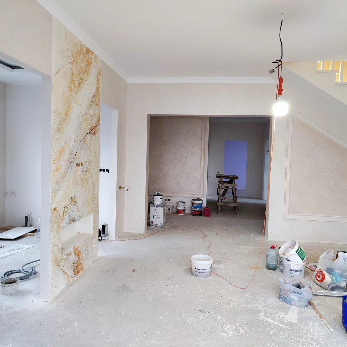 Проект 19/2022, Майкоп. Зал, лестница — Parade Milano матовый шелк и венецианская штукатурка
