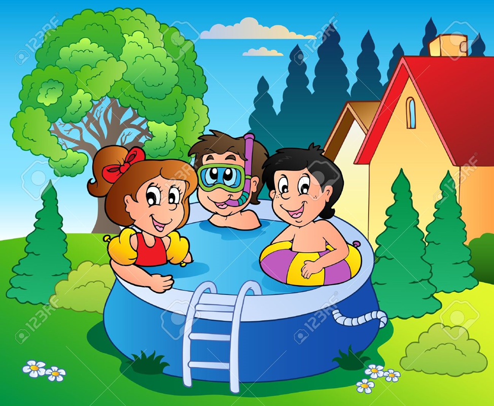 По приходу домой, дети были переодеты для купания в бассейне, намазаны солнцезащитным кремом, и допущены до водного развлечения.