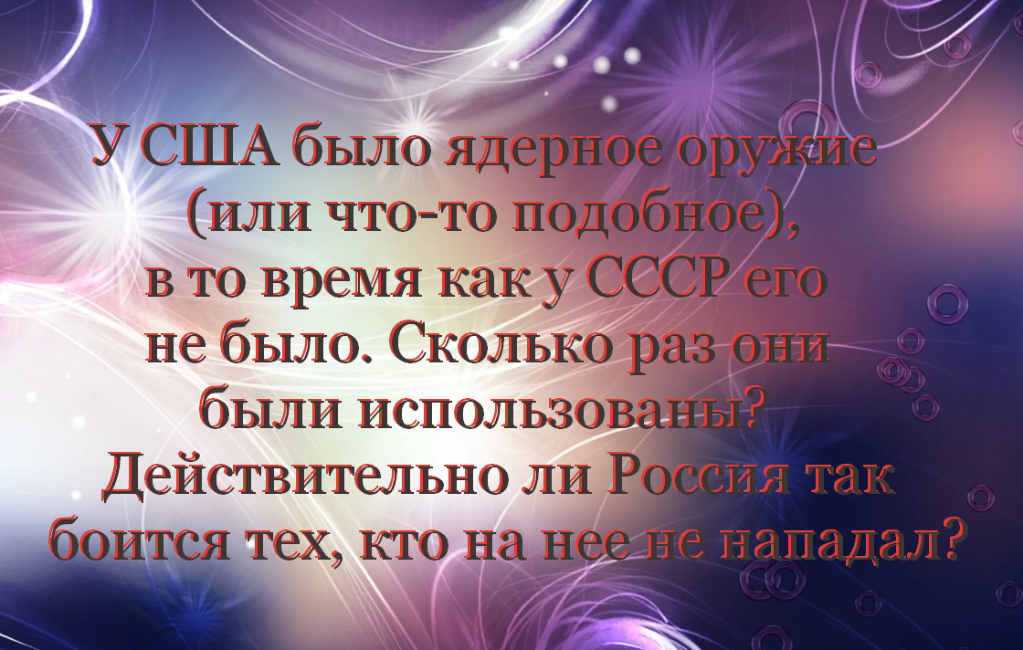 У США было ядерное оружие (или что-то подобное), в то время как у СССР его не было. Сколько раз они были использованы?