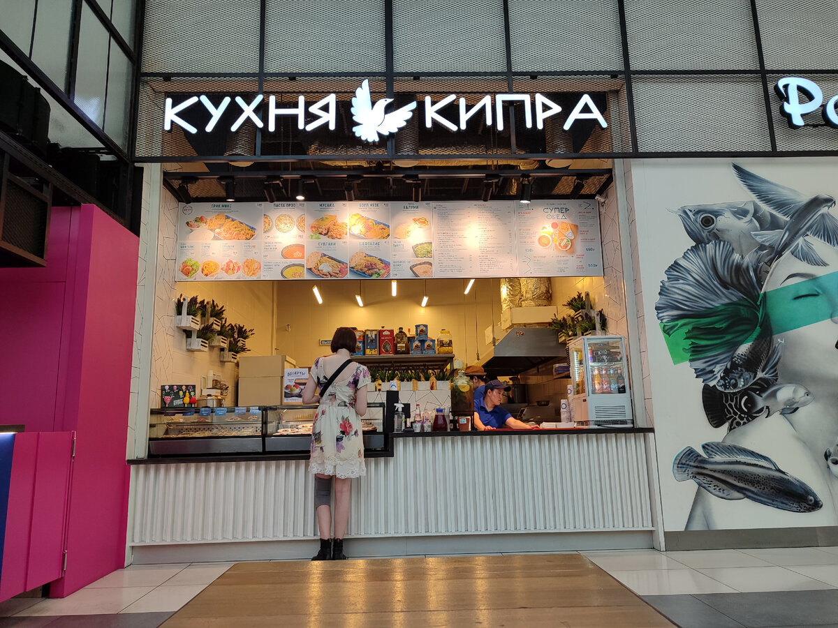 Один наш знакомый посоветовал нам место, которое мы обходили стороной по пути в Han cook. Korean bistro. Обзор на него есть на канале. (https://dzen.ru/a/YgUmlqZNuXdI4u3K?share_to=link). Ну что же, если советует, то нужно идти. Вот так выглядит их стойка. Малоинформативно, не привлекает. Не удивительно, почему мы проходили мимо. Заказ сделан в 16-10, отдан в 16-28. Используют зуммеры. Кассир говорит с сильным акцентом, что вызвало проблему в том, что бы узнать, есть ли в холодном чае мёд. Мы справились. Ничего посоветовать, кроме как греческого салата с прилавка, нам не смогли Готовят на плите. Вид всех блюд, заказанных нами. Вполне не плохо. Томатный суп с орзо (разновидность пасты) мне очень понравился. Густой суп, насыщенный помидорами и базеликом. По набору остальных специй, отдалённо напоминает харчо, что сильно удивило. Сами же орзо сварены до хорошего состояния, не альденте. Мусака (по простому - картофельная запеканка) вызвала, скорее, разочарование. Очень мало специй, баклажан