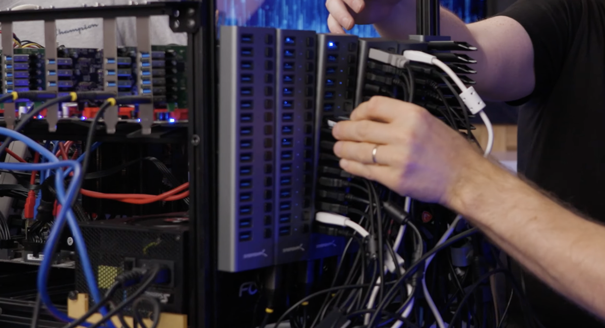 Каковы пределы подключения USB-устройств к одному ПК? YouTube-канал Linus Tech Tips проверил это на практике. Хотя теоретический предел составляет 128 устройств, практические ограничения сводят его примерно к 127. Но у них вышло подключить чуть меньше. Не последнюю роль в этом играют USB-концентраторы – хотя каждый из них может работать в режимах USB 2.1 и USB 3.1, последовательное соединение трех концентраторов приводит к сбоям в работе Windows. Концентраторы также могут вызывать проблемы с подачей питания, что затрудняет подключение даже 127 устройств. Даже 16-портовые концентраторы с питанием могут создавать проблемы из-за наличия внутренних USB-концентраторов. Для тех, кто действительно стремится расширить границы, решением могут стать материнские платы для майнинга криптовалют с многочисленными слотами PCIe и платами USB-контроллеров, говорят авторы эксперимента. В ходе тестирования Linus Tech Tips подключили 110 USB-устройств, при этом процессор работал с 30-40-процентной нагрузк