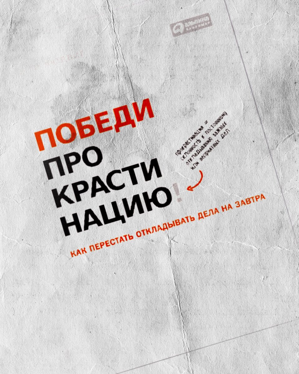 Всем хай. Ну что же, моя очередная победа в саморазвитии. Можно поставить галочку в тетрадочке, что один из этапов пройден. Сейчас объясню, почему именно галочка и именно тетрадочка. «Победи прокрастинацию!» громкое и цепляющее название. Но, всегда есть одно но, а может и не одно. Начнем с положительных моментов. Все, для меня плюсы закончились. Перейдем к минусам. Подведем итог Книга для меня не стала открытием. Я ожидал чего-то большего. Скольжение по поверхности, не более. Задача, по сути своей, не решена. Книга под ширмой прокрастинации, не решает проблему самой прокрастинации. Списки помогают лишь привить привычки. И то, где гарантии, что вы, после того, как перестанете вести все эти списки, будете продолжать двигаться в том направлении, которое себе задали. Конечно, мое мнение может отличаться от вашего, но, как мне кажется, книга подойдёт тем, кто совсем новичок и до этого ничего не читал нон-фикшн по саморазвитию.
