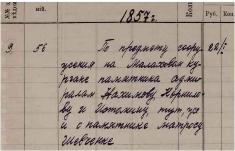 Для сооружения памятников новых и обновление старых градоначальник Севастополя Павел Перелешин обратился с просьбой открыть подписку для сбора денежных средств и 28 ноября 1875 г. Александр II разрешил провести эту подписку по всем губерниям России. Примечательно, что в памяти потомков должны были остаться имена жертвователей!