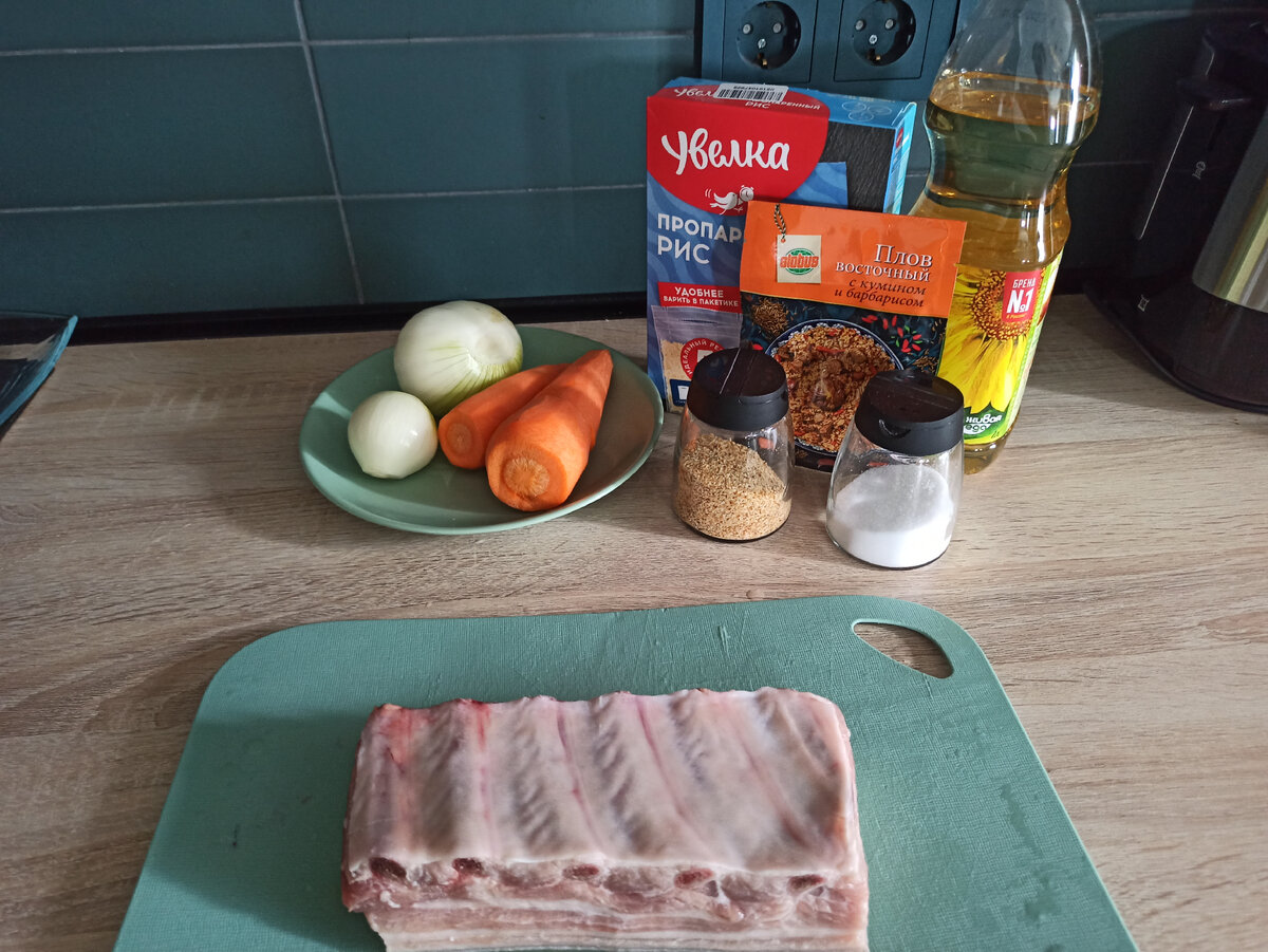 Всем здравствуйте. Сегодня хочу поделиться рецептом ленивого плова. Я с детства очень люблю это блюдо. Но к сожалению к своим 33 годам я так и не научилась его готовить. Бытует мнение,что настоящий плов нужно готовить только в казане и с бараниной. На самом деле я считаю,что мне просто не дано научиться готовить настоящий плов. Как говорится: " Плохому танцору и пол кривой".Начнем по порядку: К сожалению баранину я не люблю, да и до покупки казана руки не дошли. Хотя я много смотрела видео, где у девочек получался красивый рассыпчатый плов в обычной кастрюле. Но сколько бы я не пыталась готовить по разным рассказам блогеров, у меня как всегда получалась очередная рисовая каша с подгоревший мясом. И тут меня осенило,что можно все приготовить по отдельности и смешать. Решила воплотить свою идею в жизнь и к счастью для меня, этот эксперимент удался . И так начнем. Ингридиенты на 6 порций: Свиная грудинка 500 гр, Рис в пакетиках пропаренный 3 пакета, Лук 2 шт, Чеснок 7 зубчиков, Морков 2