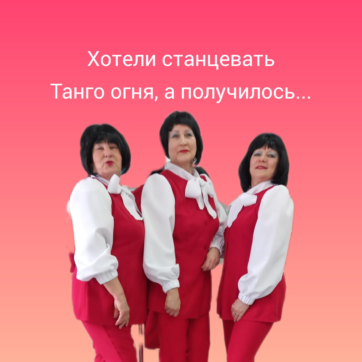 Может у молодых танцоров это и возможно, девчонки многие носят длинные волосы и их легко уложить в одинаковые причёски, но у нас с причёсками всё сложно. Поэтому, Вера предложила приобрести для всех одинаковые парики. Сначала было очень смешно. Про парики придётся, наверное писать отдельно, так как это особая песня тема.